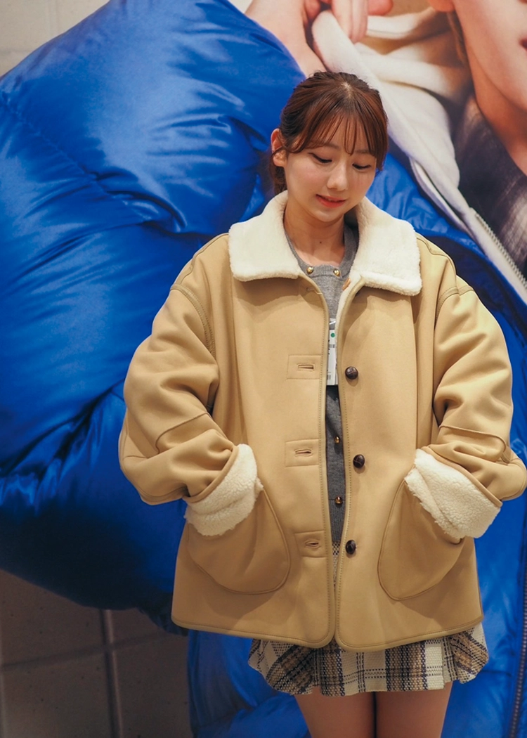 リバーシブル仕様になっていて、裏返すと真っ白なボアアウターに変身。いろんな着こなしを楽しめるのも魅力です」
