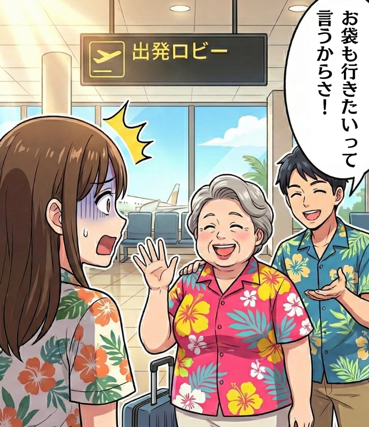 ところが、空港の到着ロビーで私たちを待っていたのは、なんと夫の母親でした。状況がまったく飲み込めず驚いている私に対し、夫は「ハワイに行くって言ったらお袋も行きたいって言うからさ。親孝行のために呼んだんだ」と、なぜか誇らしげに言い放ったのです。