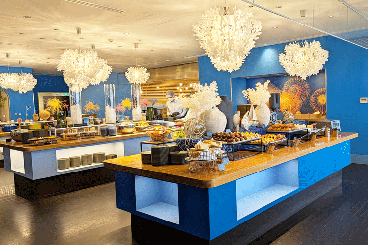 「スタジオビュッフェ もぐもぐ」は、ライブキッチンを備えたビュッフェ式。目の前で調理してくれるから、おいしさもひとしお。