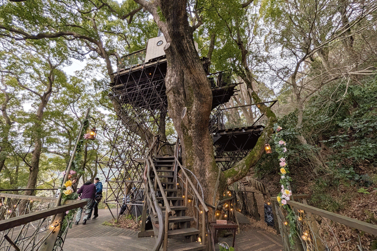 樹齢300年を超えるクスノキを利用したツリーハウス。ここを貸し切りでアフタヌーンティーを楽しめるなんて、なんて贅沢なんでしょう。