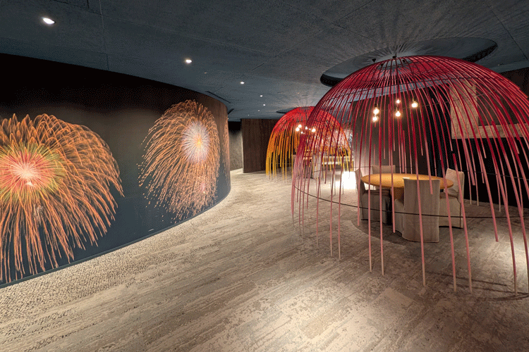 「和食ダイニング 花火」は、花火大会をモチーフにデザインされた空間で、会席料理を楽しめます。