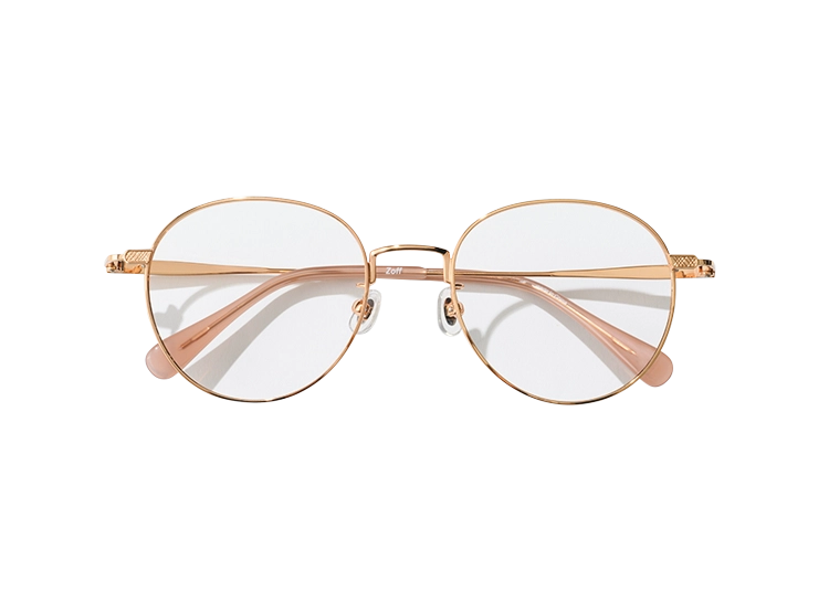 レンズの面積が大きく、メガネの存在感が強くなるので、丸みのあるデザインで、メガネの主張をやさしく中和。