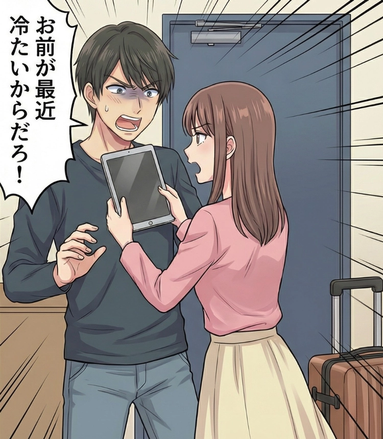 私は無言で立ち上がり、タブレットの画面を突きつけました。彼は一瞬で顔色を変え、「違うんだ、寂しかっただけなんだ」と必死に言い訳を始めます。