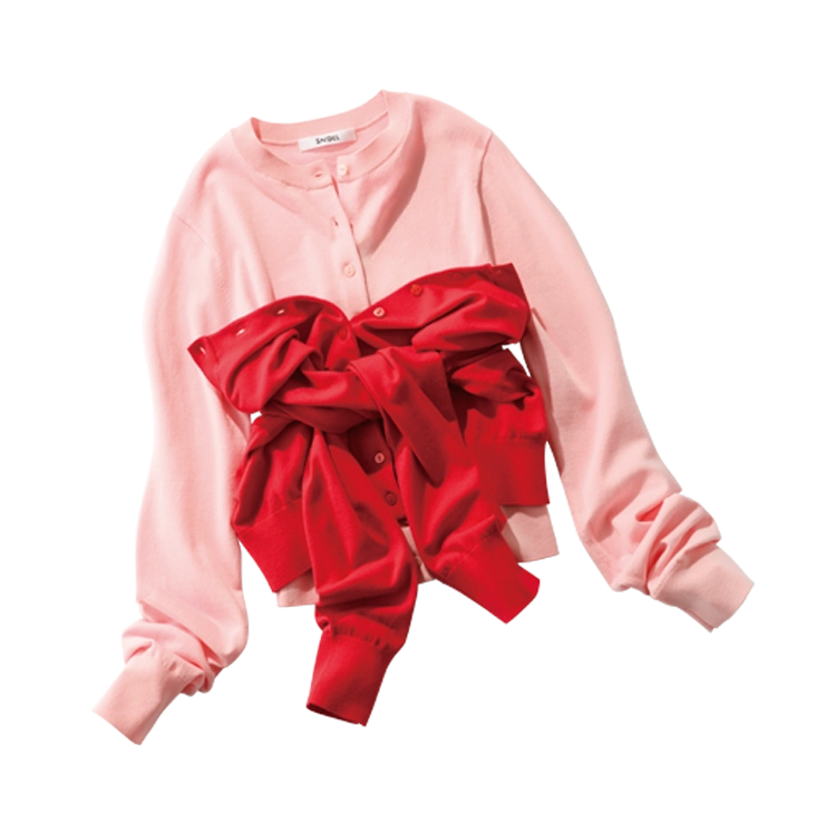 「この春はカーデ×カーデのように同じアイテムでのレイヤードが新鮮!2枚のカーデのセットなので、ビスチエのように巻くアレンジ方法もオススメしています」