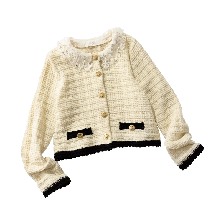 「レースのえりを取りはずすことで、シーンにあわせて印象チェンジが楽しめます。きれいめに着たり、デニムとあわせてカジュアルダウンするなど、着回し力が自慢です」