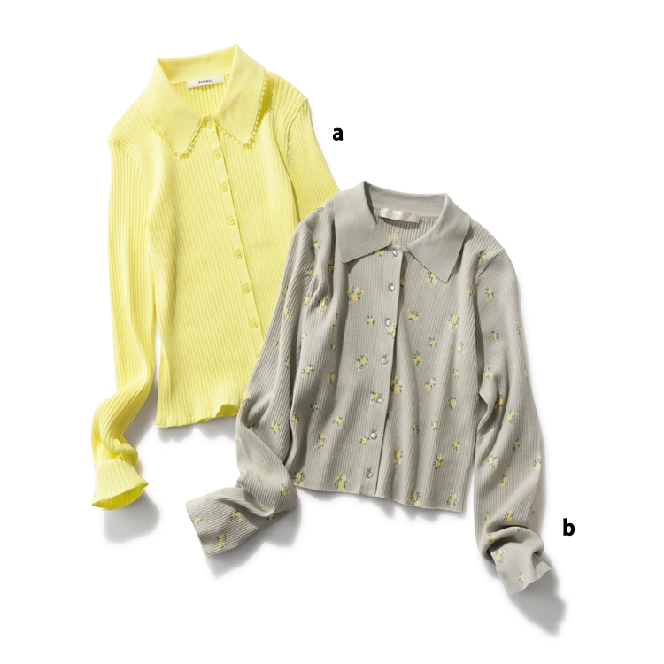 【a】イエローニットカーディガン 9,900円/SNIDEL ルミネ新宿2店