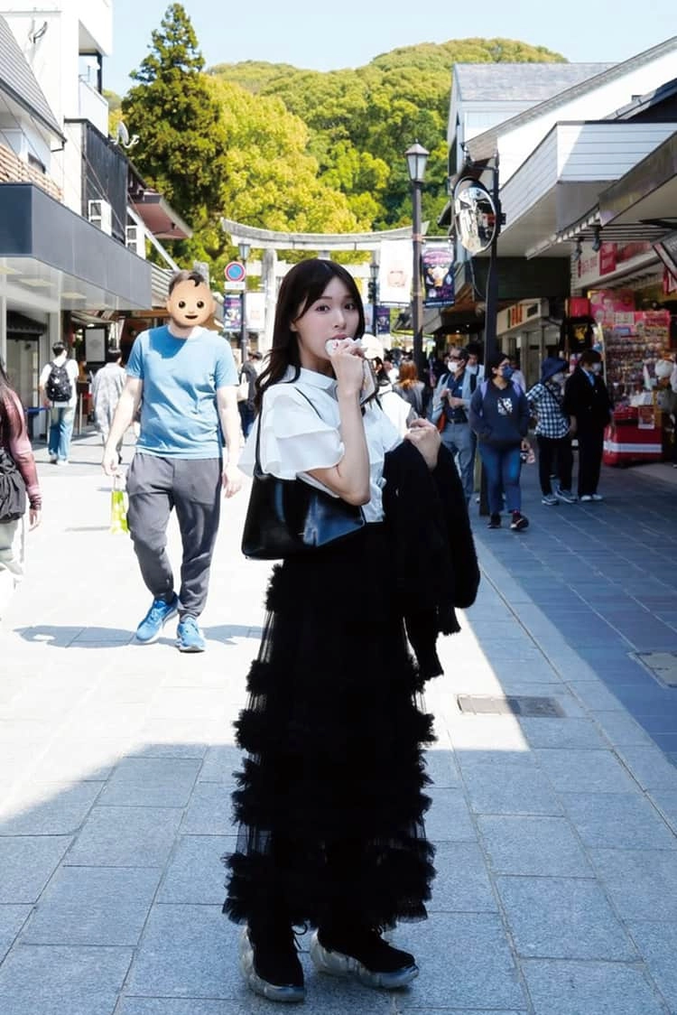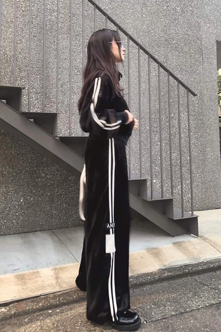 「私がプロデュースするANDGEEBEEのジャージセットアップは、私が着たい思って作った服なんです。着心地がいいので旅コーデにもピッタリ。美脚見えするようこだわった短丈トップスとボトムの形が名品ポイント♡」