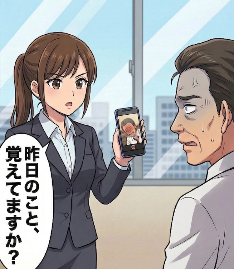 そこには、部長への不満を話す上司の姿が。すると上司の顔色が一瞬で変わり、「頼む、削除してくれ」と必死に懇願してきました。しかし私は「これは部長に報告しときますね」とだけ伝えました。