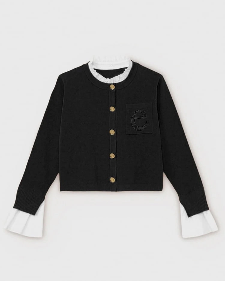 「きれいめにもカジュアルにも振れるデザインにひと目ぼれして買ったEIMY ISTOIREのカーディガン。重ね着してるみたいなフリルのあしらいの甘さがツボです♡ ピンクのお洋服が多いので黒をあわせてちょっぴりオトナに」