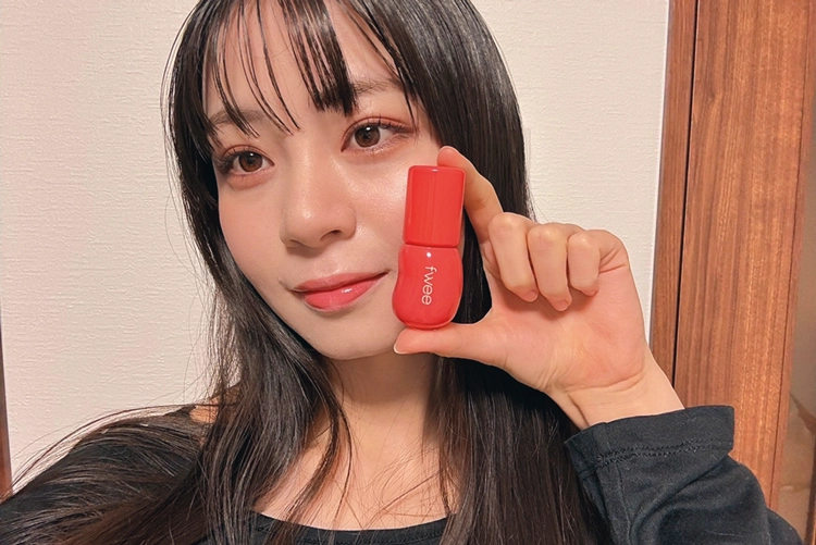 「わたしが見つけた春コスメはfweeのリップ。発色のよさはもちろん保湿力がすごくて、めっちゃうるおいます。春服ともマッチしそうで、使うのが楽しみ♪」