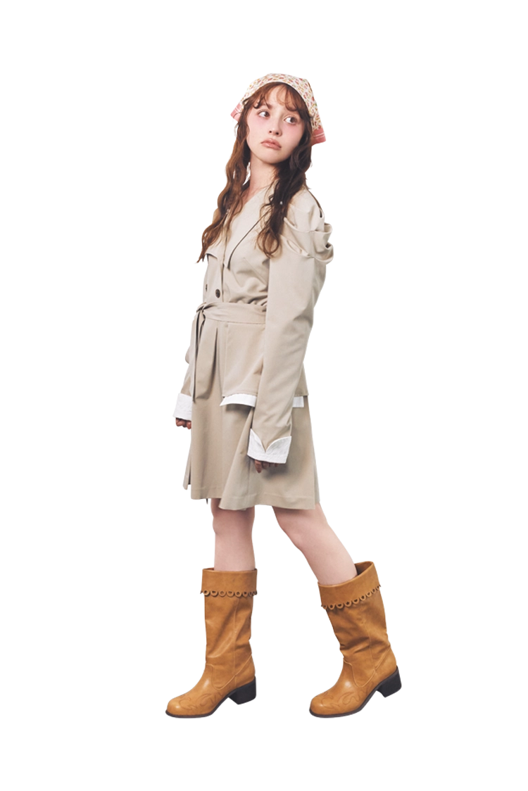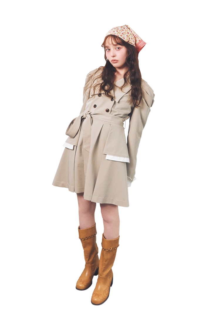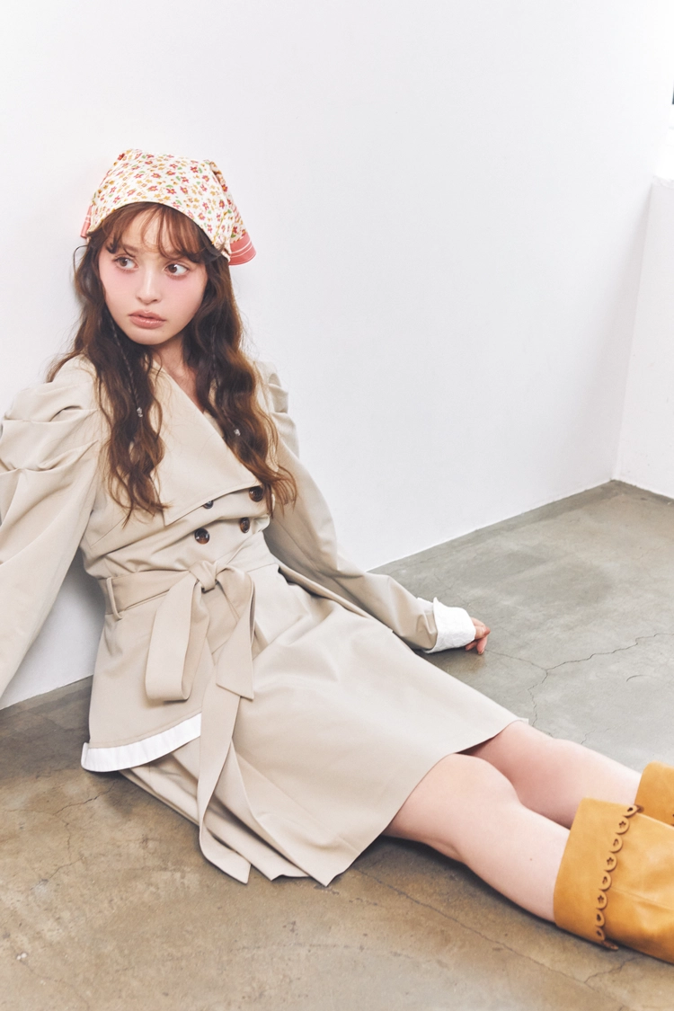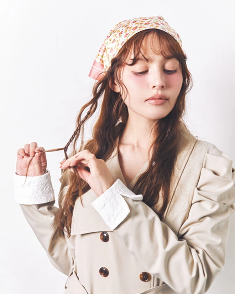 春の定番トレンチスタイルも、スカーフをぐるりと頭に巻くだけで印象が激変!