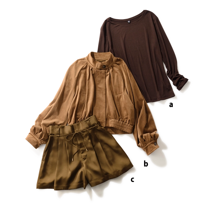 ベーシックカラーとして使っていた黒をブラウンに変えるだけで、軽やかな印象に。春カラーや赤などトレンド色との相性も抜群。
