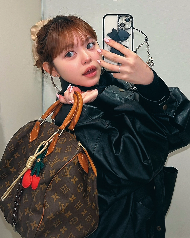 「海外ガールがブランドのバッグにチャームをつけているのを発見して、即実行。雑貨屋さんで1,000円くらいで買ったチャームだけど、ブランドロゴに負けない存在感が◎。さくらんぼのおかげでオトナなバッグが可愛い印象に」