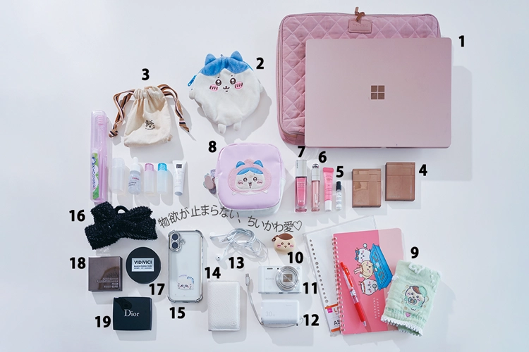- 2. ちいかわのポーチには、リップなど使用頻度の高いコスメをIN。