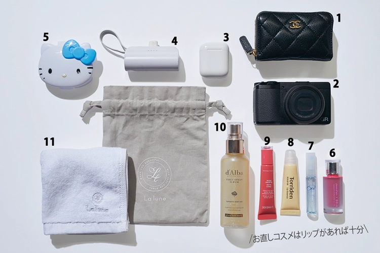 - 11. ポーチはなんでも詰め込める巾着タイプが好き。