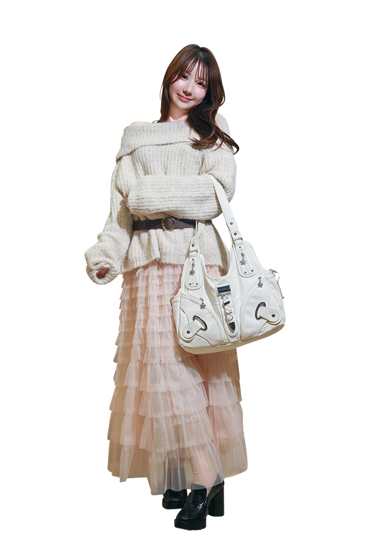 「韓国の弘大に行ったときに2,000円くらいで購入したバッグ。ガーリーな服を着ることが多いので、スタッズがついたY2Kなデザインがアクセントになる」