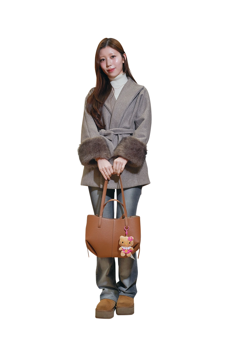 「彼からのクリスマスプレゼント。丸みのあるフォルムと上質なブラウンが今っぽくて可愛い!海外のインフルエンサーを真似してキティちゃんをつけました」
