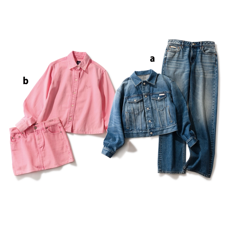 【b】デニムシャツ 9,990円、デニムスカート 7,990円/ともにGap