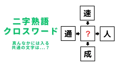 【二字熟語クロスワード】真んなかに入る漢字は?難易度は初級レベル!