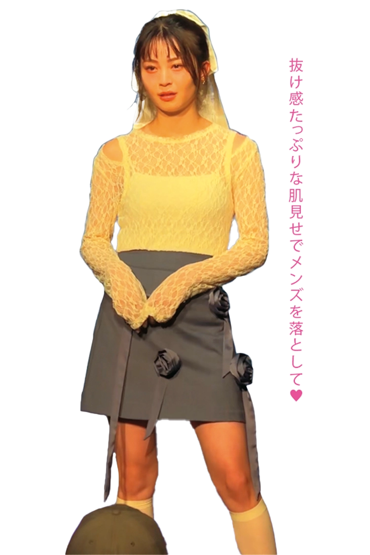 〈紗来〉ポイントレースミニスカート 9,460円/être loin バブーシュカ 3,960円/カオリノモリ(OVERRIDE ルミネエスト新宿)ブーツ/スタイリスト私物〈ナナ〉スパンコールスカート 12,430円/être loin リボンバレッタ 3,300円/idem(アンティローザ)サンダル 6,590円/ZARA(ザラ)〈紅葉〉サイドレースアップデニムパンツ 6,490円/MORE self LOVE ネックレス 4,400円/Linola(805showroom)サンダル/スタイリスト私物〈理奈〉ハートデニムショートパンツ 14,080円/lilLilly(lilLilly TOKYO)ブーツ 17,990円/ZARA(ザラ)ヘアリボン/スタイリスト私物〈琉〉スエットティアードスカート 3,299円、リボンバレッタ 550円/ともにPHILLY パンプス 10,890円/RANDA レースタイツ/スタイリスト私物〈紗英〉サイドリボンデニムパンツ 7,590円/MORE self LOVE イヤリング 2,750円/I AM THE 1(レイジーワークス)サンダル/スタイリスト私物