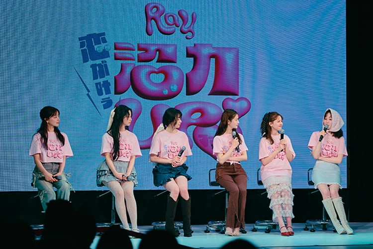 アザーショットを大公開♡ くれはMCによる、開演前のオープニングトーク 〈画像上・右〉ネイビー2WAY ベロアワンピース 15,900円 /OJYON(シアン PR)イ ヤリング 3,630円/Phoebe ネックレス 3,700円/grace パンプス 10,890円/RAN DA〈右から2番目〉グレーラ インストーンショートジャケット 15,400円、ローズモチーフミ ニスカパン 11,000円/とも にjouetie イヤリング 3,960 円/Labikara サンダル 11,990円/RANDA ソッ クス/スタイリスト私物 ※他2名は画像下と同様。 〈画像下・右〉白カットアウトトップス 6,490円/ REDYAZEL ルミネエスト新宿店 ドット柄ティア ードスカート 4,399 円/W♥C イヤリング 11,000円/*gramii*〈中央〉アイボリーマー メイドワンピース 16,500円/RESEXXY ミュー ルパンプス 8,910円/RANDA〈紅葉〉ブルー パフスリーブシャツ 24,200円、黒リボンビスチエ 26,400円/ともにw/LISA 黒レースレイヤード ミニスカート 3,299円/PHILLY イヤリング 7,290円/アビステ ブーツ 15,400円/rienda (バロックジャパンリミテッド) Ray表紙パネルで記念撮影!