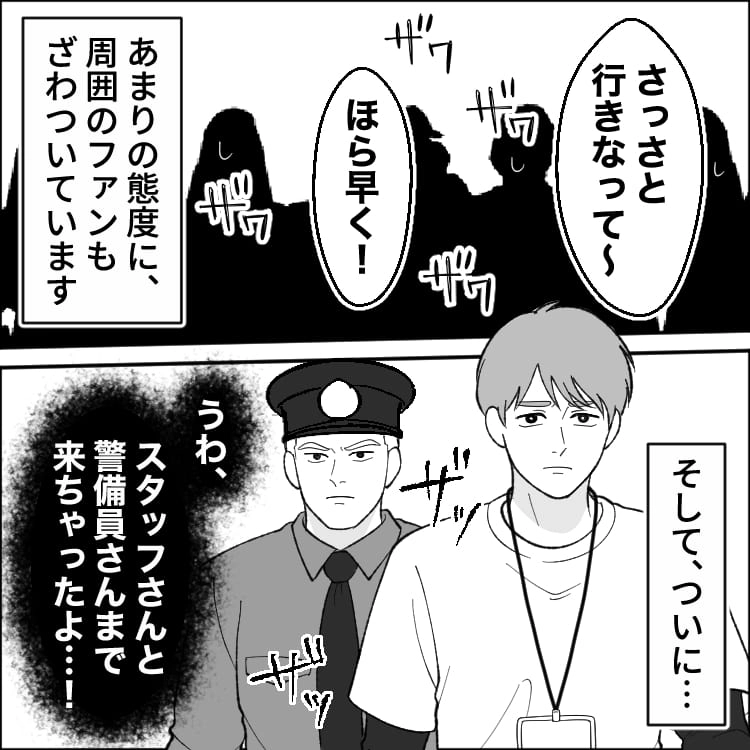 【推し活】「にわかファンは後ろに下がりなよ」グッズ列に並んでいたら割り込まれた!?その後、警備員が来て【予想外の事態】に...! COMIC2026/04/17今回、Ray WEB編集部は、ライブ会場にいた迷惑なファンについて読者に話を聞いて漫画にしてみました。次のページ12345…7人気の漫画一覧はこちら#TAG#漫画SHARE