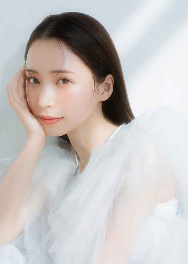 「どんなときも透明感は大切にしていますが、特にアイドルメイクではピュアっぽさ全開に。ベースからみずみずしく底上げしつつ、可愛さの要であるチークも仕上がりの質感にあわせてリキッド系で統一するのがポイント」