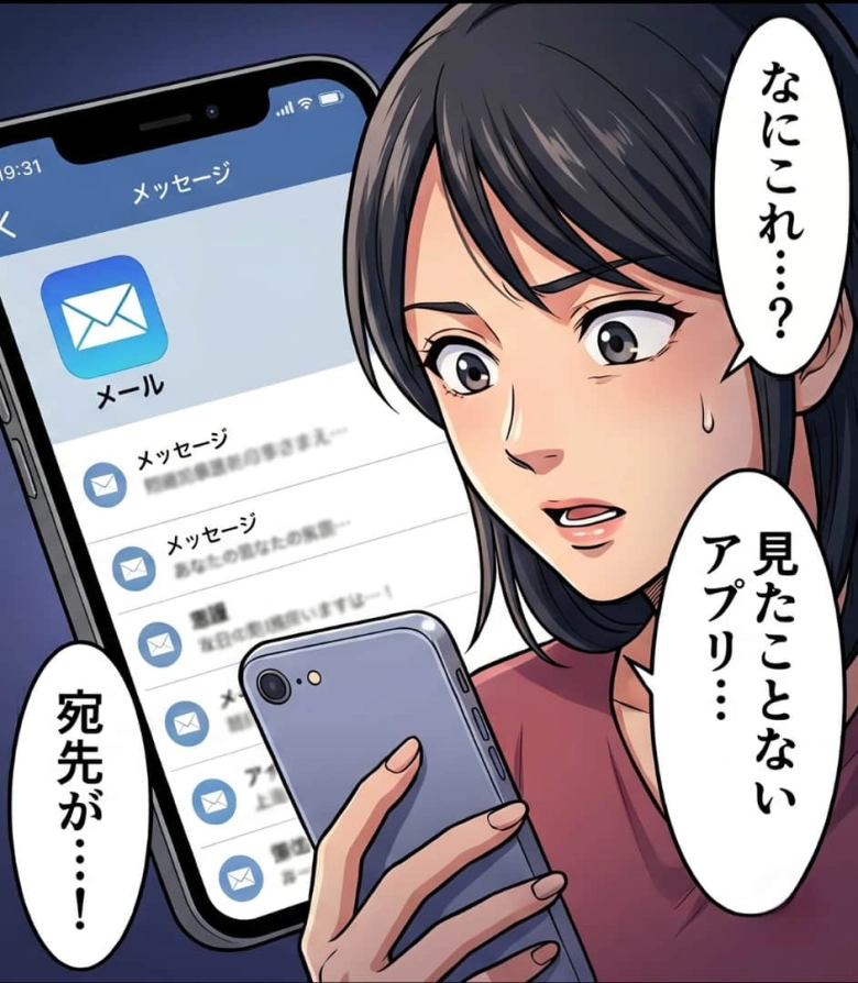 ホーム画面に不審な点はありませんでしたが、フォルダの奥に見慣れないメールアプリを見つけました。彼が普段使っている様子はありません。