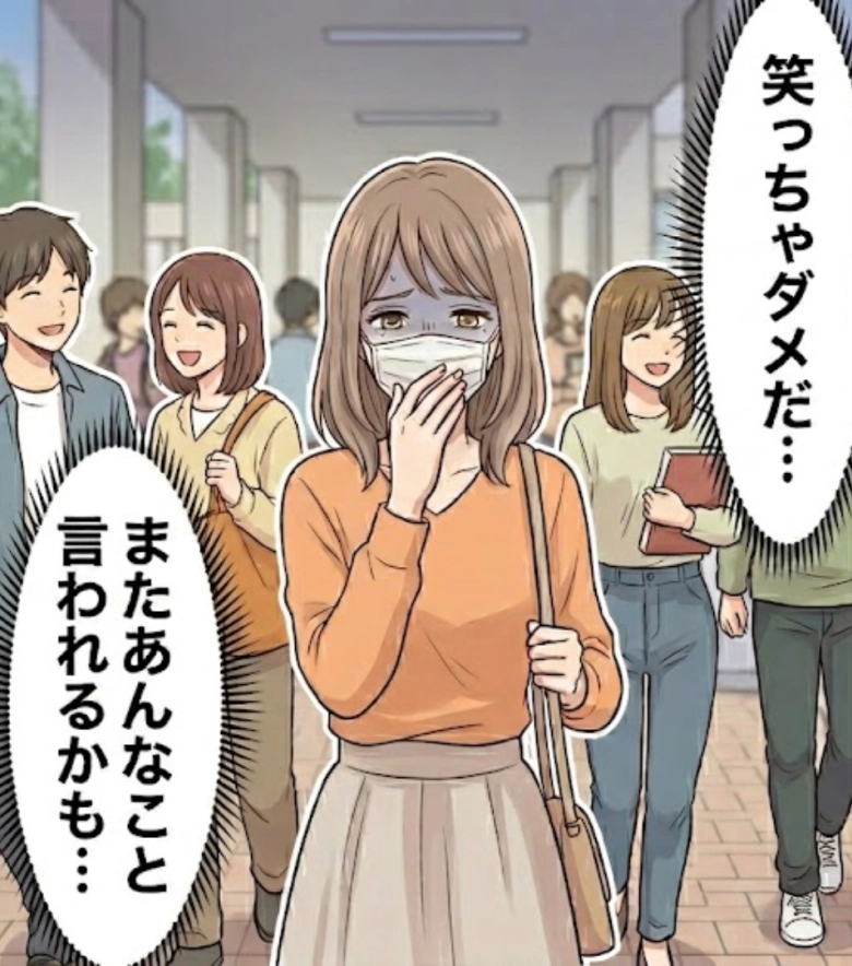 友人と話しているときも、笑いそうになると反射的に口元を隠したり、無理に表情を抑えたりするようになりました。