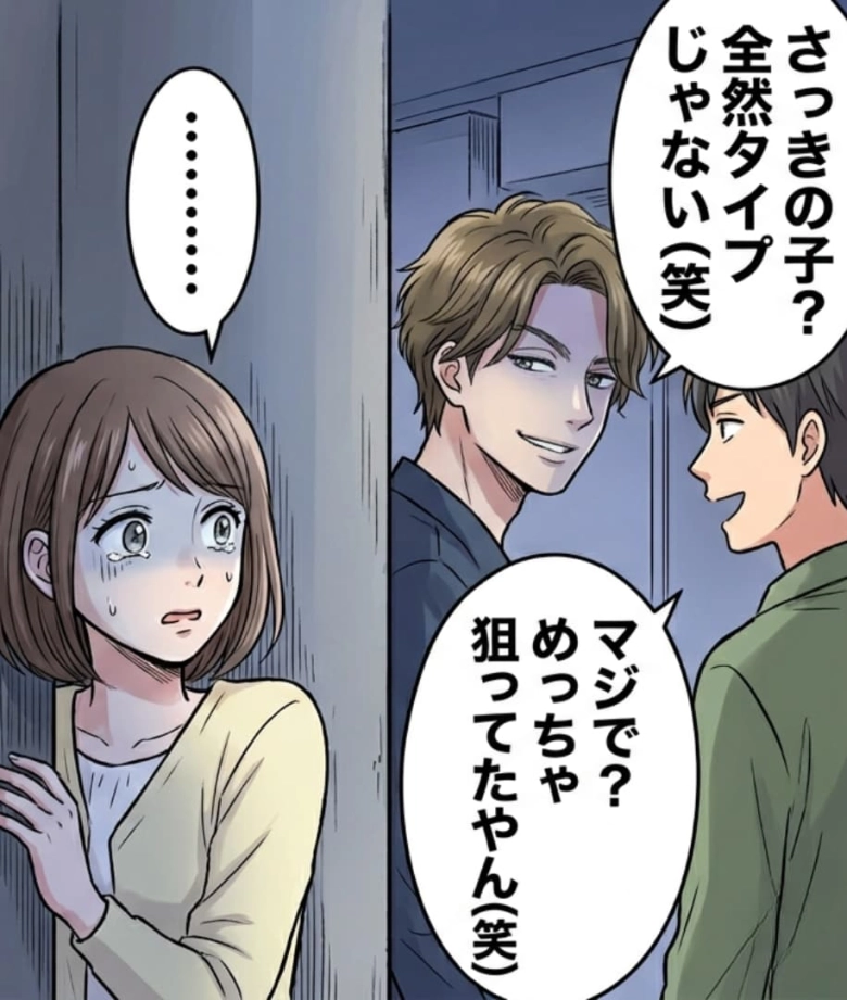 しかしその直後、廊下で耳にした会話が私の気持ちを一瞬で凍らせました。彼は男の先輩たちに向かって、「新歓で声かけた1女、完全にいけそう」と笑いながら話していたのです。