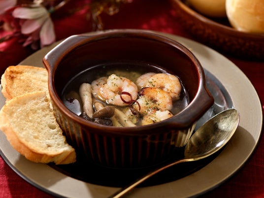 プリプリの海老の食感とニンニクの芳ばしい香りのハーモニーがたまらない!スペイングルメの中でも絶大な人気を誇る『海老のアヒージョ』。