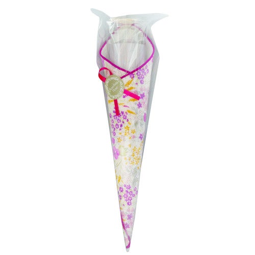 ハンカチと石鹸がセットになったブーケ型のギフトです。石鹸はうるうおい成分配合なので、洗い上がりしっとりさやかです。ハンカチはさらっとしたフラワー柄のプリント生地とやわらかなニットタオルのハンカチです。