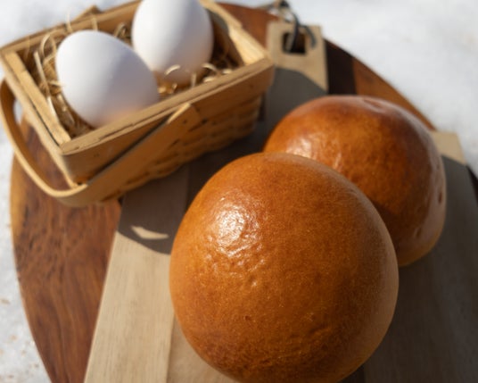 平飼い卵のクリームパンプチシューと同じ、白老町の平飼い卵を使った自家製カスタードを贅沢に包んだクリームパン。お砂糖は北海道のてんさい含蜜糖を合わせました。ふわふわの生地にクリームがたまりません!