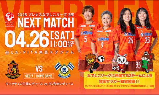 この度、2025プレナスなでしこリーグ2部所属の「ヴィアティン三重レディース」は、朝日インテック・ラブリッジ名古屋とLA・PITA東員スタジアムにて、ホームゲームを共催することとなりましたので、お知らせいたします。