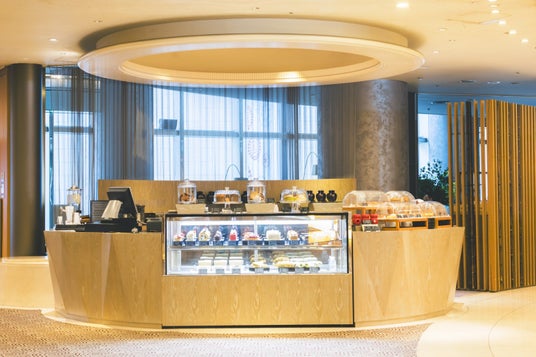 柔らかい色調のインテリアがくつろぎの空間を生み出す「ザ・ラウンジ」。季節のケーキやデザート、アフタヌーンティーで穏やかなティータイムを、またはシャンパンやカクテルを片手に優雅な午後のひとときをお楽しみください