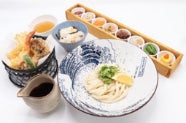 「岐阜城楽市」内の店舗は、岐阜ならではのグルメを扱った店舗も多数あり、思う存分岐阜グルメを楽しめます。■四季彩うどん 華きんとん自社製麺所で作るこだわりのうどんと、出汁が香るおこわ、色とりどりのお惣菜を召し上がっていただける和食レストランです。店内には岐阜県産の提灯を象徴的に飾り、長良川をモチーフにしたボックス席でゆったりと食事を召し上がっていただけます。岐阜公園の四季を感じられるテラス席もご用意しています。