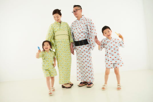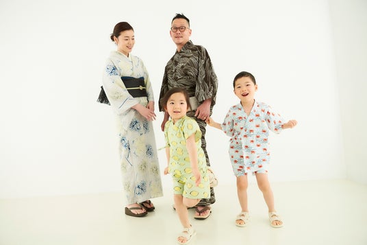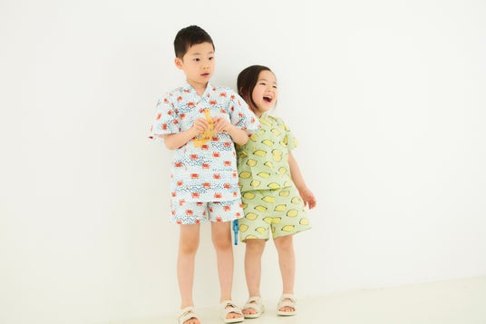 きものやまと初のオリジナル「こども甚平」が登場。親子でお揃いが楽しめる「つながるレモン」「カニさんぽ」を展開。