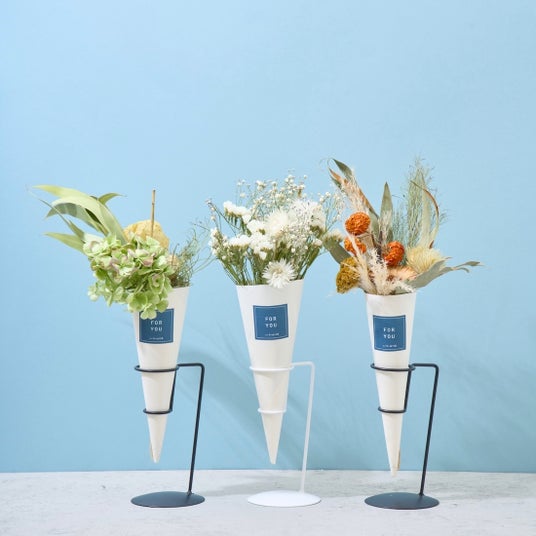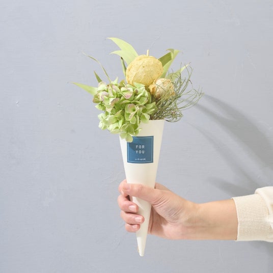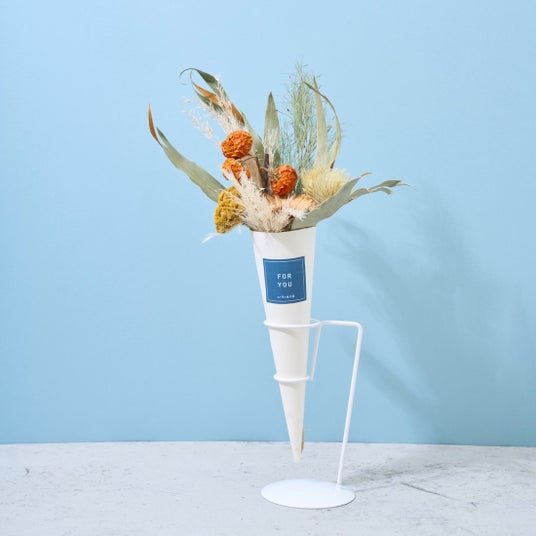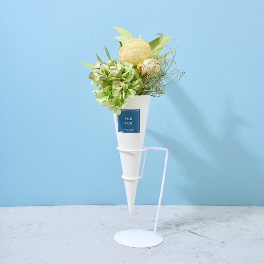 「アイスクリームブーケ」は、旬のドライフラワーをふんだんに使い、まるで本物のアイスクリームのように仕立てた、遊び心あふれる新感覚ギフトです。