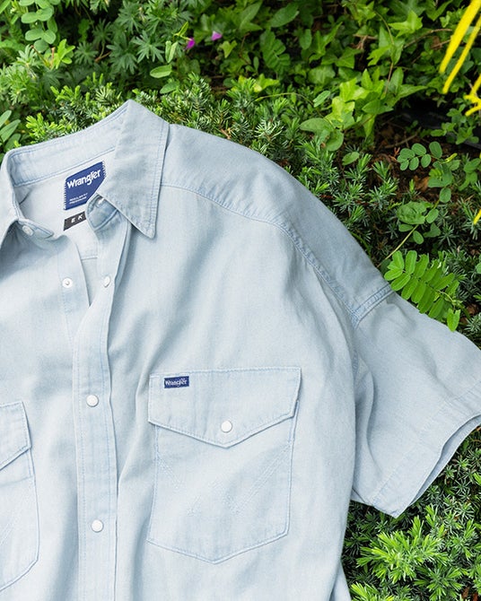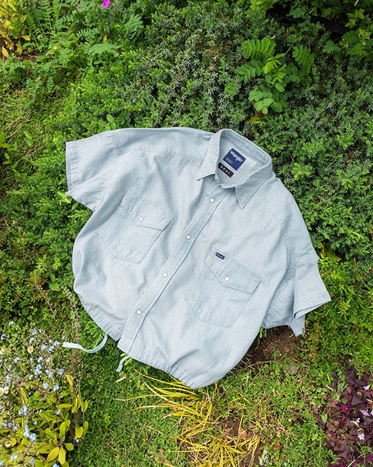 裾にドロストで1枚でも羽織りでもニュアンス変化のコーディネートを楽しめるオーバーサイズ半袖シャツは、EKALオリジナルデザイン。ポケットにはWranglerのWのステッチとピスネームが施されています。セットアップでもワンピースに羽織ってもどんなボトムにも合わせやすいデイリーユースなシャツアイテムです。