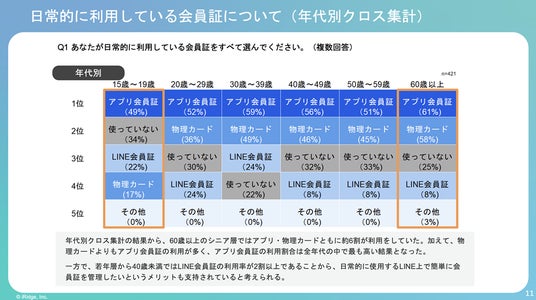 物理カード派が多かった60歳以上でアプリ会員証が大躍進、全年代で利用率が1位に