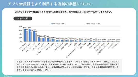 アプリ会員証をよく使う業種TOP3はいずれも前回調査比10ポイント以上利用率が拡大