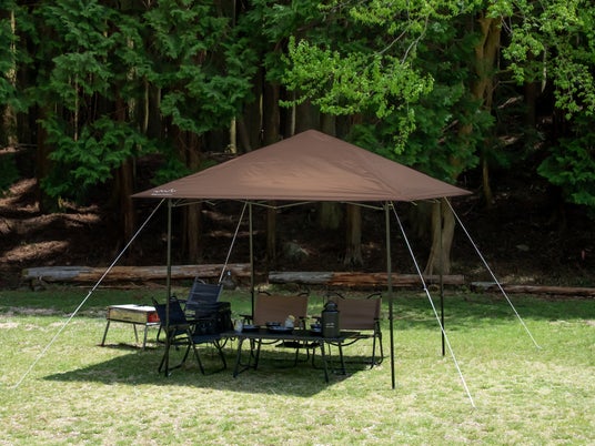 傘のような構造のプッシュボタン式で、ワンタッチで簡単に設営が可能なタープテント。100%完全遮光で日差しをしっかり防ぎ、素早く大きな日陰を作るためファミリーにもおすすめの商品です。