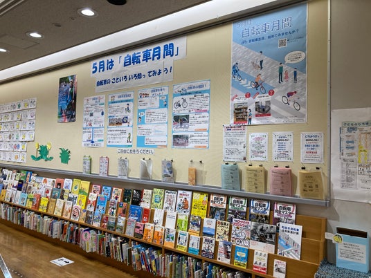 ■内容:(1)自転車に関するパネル展示 (2)自転車をテーマにした本の特集コーナー