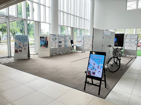 (1)シェアサイクルサービス「HELLO CYCLING(ハローサイクリング)」で実際に使用している電動アシスト自転車の展示