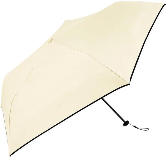 軽量生地とカーボン骨を使用した重さ約120gの軽量傘。傘袋のリボンがポイント。