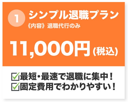 - シンプル退職プラン:11,000円(税込)※退職代行のみ