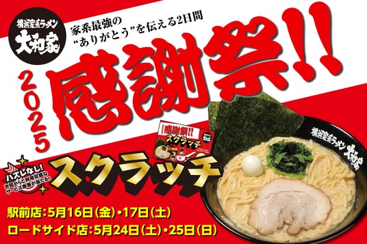 横浜家系ラーメン大和家、日頃の感謝を込めて「2025感謝祭」をグループ全店で開催、ハズレ無しのスクラッチくじを店頭でチャレンジしよう!