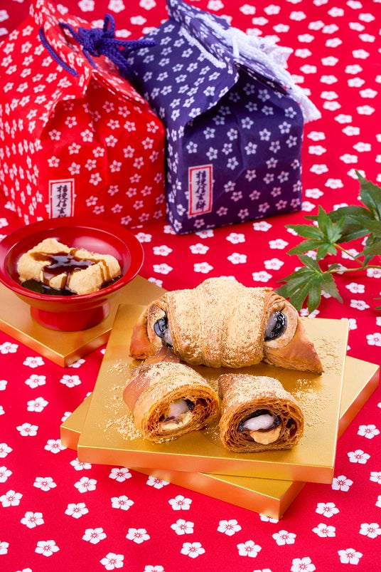 「プレミアムチョコクロ 桔梗信玄餅」は、練り込んだ黒糖の優しい甘さと、サクサク食感を両立させた今回だけの特別なクロワッサン生地を使用。国産大豆を使用した香り高いきな粉ホワイトチョコレートと、もちもち食感の求肥フィリング、黒みつクリーム※が合わさり、濃厚で奥深い味わいをお楽しみいただける一品です。黒みつクリームは昨年以上に黒みつの風味を感じられる濃厚なクリームを使用しており、さらに上質で豊かな甘みとコクを味わえます。仕上げには、「桔梗信玄餅」にも使用される香ばしいきな粉をたっぷりトッピング。一口ごとに、きな粉と黒みつの絶妙なハーモニーが広がります。
