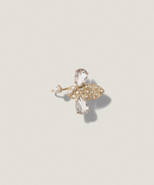 ヨーロッパではミツバチは縁起の良いもの、幸運の象徴、そして愛のシンボルとして親しまれており、Junco parisのシグネチャーアイテムのひとつでもあります。ラインストーンとパールを組み合わせることで、プレイフルなデザインの中にも上品さがプラス。
