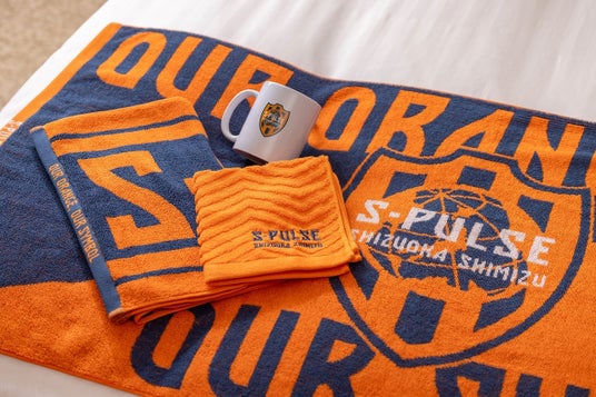タオルやマグカップなどのアメニティで室内全体をエスパルス一色に。